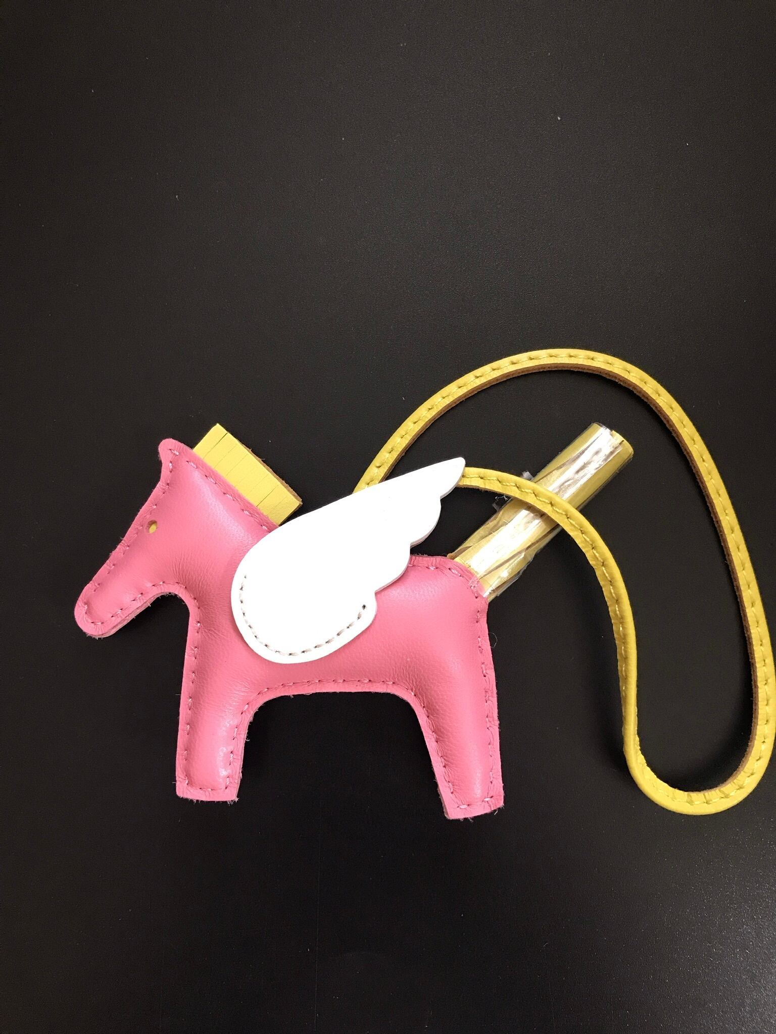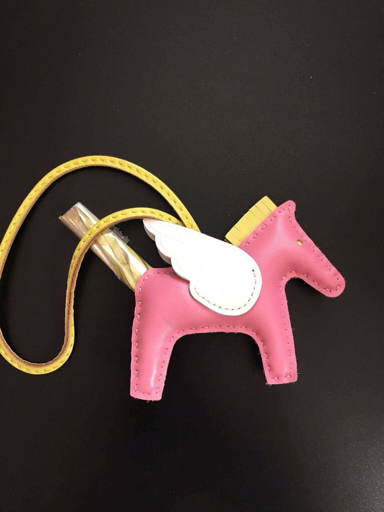 ピンク×ホワイト×イエローの可愛いペガサスモチーフのお馬ちゃんバックチャームです。